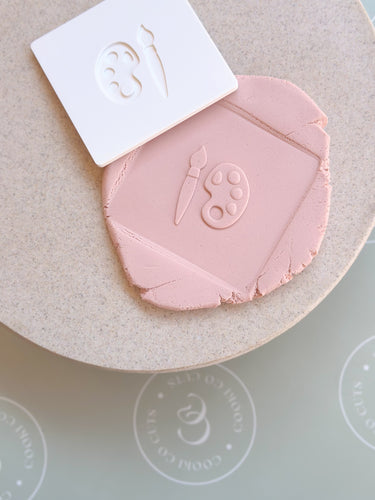 Paint pallet and brush debosser plate